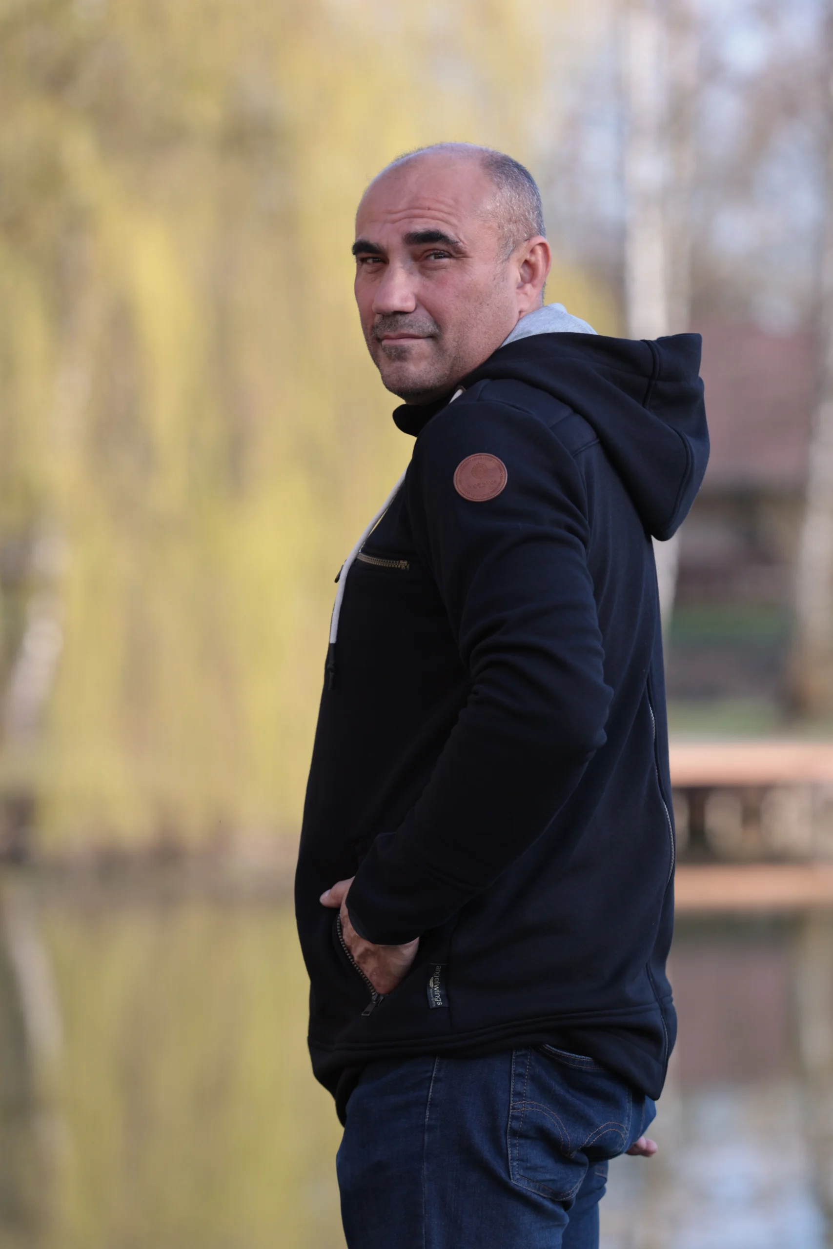 Tyto nosící mikiny pro vás šijeme z warmkeeperu – teplákoviny s jemným delším chloupkem uvnitř. Jsou tedy hřejivé a velmi příjemné i na holé tělo. Chlupaté jsou mikiny ale pouze uvnitř, zvenčí vypadají jako běžná mikina z teplákoviny. Díky teplejší úpravě materiálu je mikina vhodná na jaro i podzim a na chladnější letní večery. Pro pánskou varinatu naší oblíbené nosící mikiny jsme zvolili neutrální černou barvu, kterou určitě ocení každý tatínek.