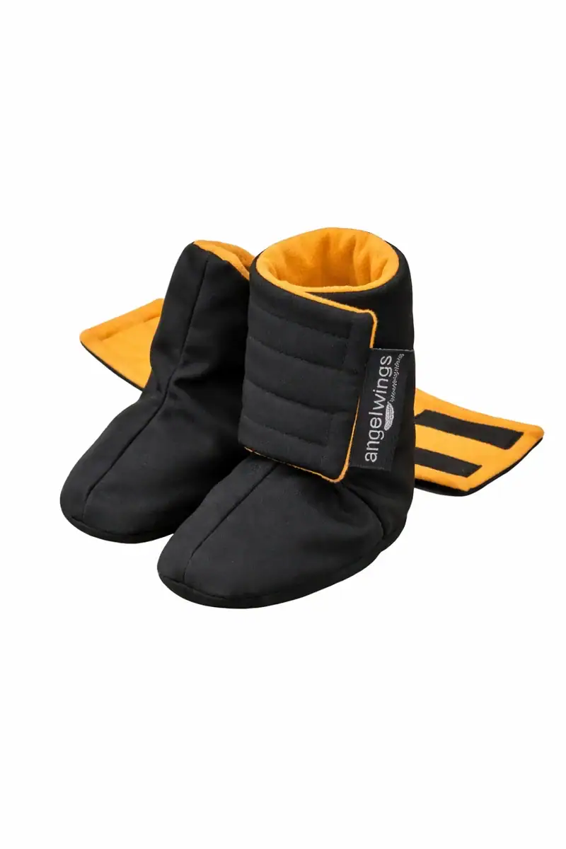 Díky možnosti úplného rozvinutí se dají velmi snadno nasadit a utažením suchých zipů přizpůsobit lýtku miminka tak, že nepadají.